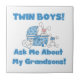 Skål för nya mormor från Tvillin pojke kommer att kärlek denna söta blå design med två knivar i en blå bassäng och blå text som lyder "Fråga mig om mina Grandsons!"