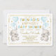 Twin Boys Elephant Baby Shower Blue Guld Jungle Inbjudningar