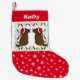 Twin Chocolate Labrador Santas Small jul Stocking for Chocolate Labrador Retriever Owners. Stollig och söt Labrador Retriever-Tecknad skapat av Naomi Ochiai från Japan. Två beundransvärda chokladarbetare tittar tillbaka med Santa Hats och Mustacher! Röda och snöflingor tillför festliga känslor.
