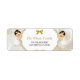 Vackert flicka i hennes dödande klänning och guld kor halsband. Bakgrunden är vit satäng och guld filigree med guld och silver glitter ram och förskönande av bågar. Text lämnat tom till skriva i varje adress och använda som en utskicksetikett.