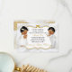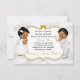 Vackra två flicka & pojke i sin dödande klänning och guld kor halsband. Inbjudan har sin bakgrund i vit satäng med guld och silver glitter ram och förskönande av buken. Baksidan är försedd med guld-blomman mönster & guld på en vit satinbakgrund.