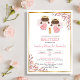 Meddela dina tvillingflickors baptism i stil med inbjudan. Utformningen visar sött baby änglar och ömtåligt rosa löv. Español/spanska: Celebra el Bautizo de tus hijas con esta invitacion.