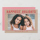 Det här söta helgdag har en papper bakgrund med röd och vit bakertråd, festiv typografi och ett hälsning som helt enkelt säger "Happiest Helgdagars". Den här designen rymmer ett vågrät foto. På baksidan finns ett rött och vitt diagonalt rand mönster som återger bagarens tråd på framsidan. Du kan anpassa den här designen ytterligare genom att lägga till ytterligare ett foto och/eller text till baksidan.
