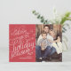 Det här glänsande kortet frammanar säsongens glädje och är exklusivt designat för Zazzle. Perfekt för en traditionell högtidshälsning... med en touch av flärd. Djärv, troende skrivstil i vitt med röd bakgrund framhäver dina favoritfoton. Lägg till ett Envelopments Holiday Stamp från vår omfattande brevmärkesamling för att matcha perfekt med din hälsning. Envelopments kuvert, innerkuvert och Pocketfold®-foder är tillgängliga som tillval (till höger) via Zazzle.com
