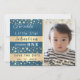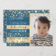 Bekväma guld-stjärnor i kombination med marin blå bakgrund. Cute, modern, celestial pojke 1st Birthday Save Date-inbjudan, med anpassningsbar-foto.