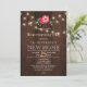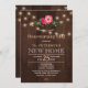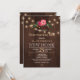 Inbjudan till Rustic land stil-uppvärmning Bq/party-snyggt på mörk brun laduvirke med en blomma i rosa blommor bouquet, en sträng av ljus och tre lukthjärtan på baksidan. Fyll i informationen på plats. Du kan välja att anpassa den ytterligare genom att ändra typsnitt och färg på text. — Inbjudan är lämplig för utomhusträdgård/hobbygård, rustik land Homeuppvärmning party. — Kontakta mig om du behöver hjälp!