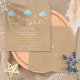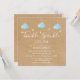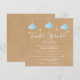 Inbjudan med söta blå moln och gyllene stjärnor på snören på en rustik kraft-boho-bakgrund, perfekt för alla små barn som är på väg. Lägg till dina festdetaljer i vitt för att skapa den perfekta inbjudan. Designad av Thisisnotme