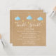 Med söta blå moln och gyllene stjärnor på strängar, på en rustisk kraftboho-bakgrund, är den här baby-sprinkeln, duschen eller par-duschinbjudan perfekt för alla små som är på väg. Lägg till dina firande-uppgifter i vitt om du vill skapa inbjudan till perfekten. Designad av Thisisnotme©
