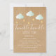 Med söta mintgröna moln och gyllene stjärnor på snören, på en rustik kraft boho-bakgrund, är denna könsneutrala inbjudan till baby shower perfekt för alla små barn som är på väg. Lägg till era fstdetaljer i vitt för att skapa den perfekta inbjudan.