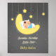 Gör baby-daghemmet eller barnrummet gnistra med detta söta dekorativa biet. Konstruktionen har en vacker pojke som sover blixtfullt på det halvmånne måne, medan mousserande och glittrande upprivna stjärnor skiner vackert över den kontrasterande grått bakgrunden. Anpassa med barnets namn.