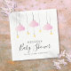 Twinkle twinkle little star baby shower flicka rosa servetter med söta rosa moln och gyllene stjärnor på snören, på vit bakgrund. Anpassa med din speciella händelses detaljer i elegant svart text. Designad av Thisisnotme©