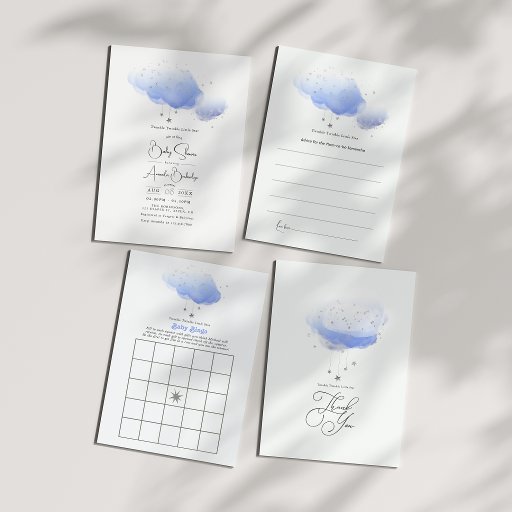 Skicka en hjärtlig tacksamhetsnot med detta Twinkle Twinkle Little Star tackkort för babyfirande. Med en drömlik akvarellmoln, kaskaderande silverstjärnor och elegant scripttypografi matchar detta kort perfekt det himmelska firandetemot. Det anpassningsbara meddelandet på baksidan låter dig lägga till en personlig touch, oavsett om det är från de blivande föräldrarna eller direkt från barnet. Ett vackert sätt att tacka gästerna för deras kärlek och stöd.