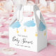 Twinkle twinkle little star blå pojke baby shower förmån låda med söta blå moln och gyllene stjärnor på strängar, på en vit bakgrund. Anpassa med dina speciella evenemangsuppgifter. Designad av Thisisnotme©