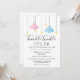 Twinkle twinkle little star kön avslöjande fest shower inbjudan med söta rosa och blåa moln och gyllene stjärnor på strängar, på en vit bakgrund. Designad av Thisisnotme©