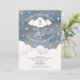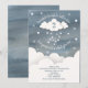 Vänd på ett litet stjärna med liten stjärnfödelsetema med moln och stjärnor över en blå, vattenfärgsininspirerad bakgrund.