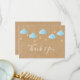 Twinkle twinkle lilla stjärna tack-kort, med vit script tack-text med söta babyblå moln och gyllene stjärnor på snören, på en rustik boho kraft bakgrund. Du kan anpassa med ditt eget tack-meddelande på baksidan, ett perfekt sätt att säga tack! Designad av Thisisnotme©