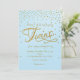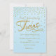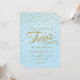 TWINS Baby Shower Ljusblå & Guldprickad Inbjudan.