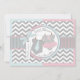 Chic grått och vit chevron med rosa och blå kontrast och en söt jumper med polka med blå slips och en rosa tutu och 3D-seende båge och band för twillingar, babyduschkort.