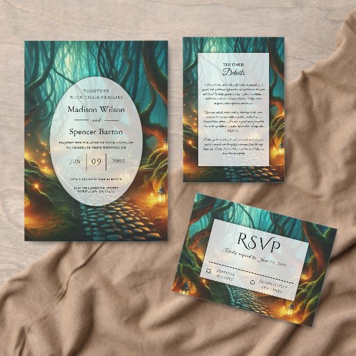 Twisted Woodland Lantern Path Bröllop Inbjudningar