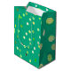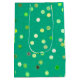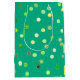 A single gift bag in our Twisty Polka Dot Spirals design in green. Part of a versatile, decorative collection with yellow, green, and orange as the primary color schemes - a collection featuring coordinated patterns and designs created to work together. The focus is on clean, balanced visuals that are easy to mix and match across many creative projects. Works well for year-round use and a wide variety of themes and occasions. Suitable for children, teens, and adults of all ages.