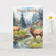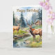 Two deer in mountain landscape with trees and flowers. Suitable for a birthday for anyone