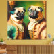 Two Funny Anthropomorphic Vintage Pug Canvastryck