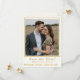 Design features the photo you provide as main design displayed against a pale cream background and framed by an elegant, ochre colored border. Just below photo, your text containing heading, names and city & state of wedding are displayed in a matching ochre font.