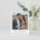 Design features the photo you provide as main design displayed against a white background and framed by an elegant, navy-blue colored border. Just below photo, your text containing heading, names and city & state of wedding are displayed in a matching navy-blue font.