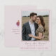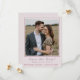 Design features the photo you provide as main design displayed against a pale pink background and framed by an elegant, dusty-rose colored border. Just below photo, your text containing heading, names and city & state of wedding are displayed in a matching dusty-rose font.