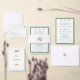 Design front features the names of couple displayed in an elegant Forest-Green Nuptial font. The customizable heading is displayed below in large letters. All text is displayed against a white background and framed by an elegant Forest-Green border.