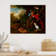 A beautiful print of “Two Macaws, a Cockatoo and a Jay with Fruit” painted in 1710 by Jakob Bogdani. Jakob Bogdani (1658 - 1724) was a Hungarian and British artist well known for his still life and exotic bird paintings. He was born in Hungary but moved to London in 1688 and found success as a specialist still life and bird painter at the court of Queen Anne—several of his paintings became part of the Royal Collection.