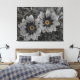 A pair of delicate daisies take centre stage in this striking selective‑colour photograph. The petals and surrounding foliage are rendered in smooth grayscale, creating a calm, monochrome backdrop. At the heart of each bloom, vivid yellow‑orange centres burst with warmth and detail, forming a dramatic contrast that immediately draws the eye. Fine water droplets rest on the petals and leaves, adding texture and a sense of freshness. The combination of soft tones and vibrant colour accents gives the artwork a modern, elegant feel that suits home décor, nature lovers, and contemporary art collections.
