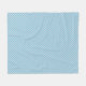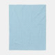 "Two sections showing the front and back of a blanket. The front features a blue and white polka dot pattern, while the back is plain white."