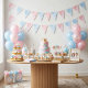 Charming watercolor bunting flag design featuring alternating pink and blue flags for a boy-and-girl twins celebration. Each flag is softly painted with gentle watercolor texture, creating a sweet vintage nursery look that pairs beautifully with the Two Silly Geese theme. Perfect for decorating a twin's first birthday or baby shower, adding a soft pastel and coordinated touch to the party space.