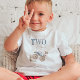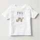 T-shirten är designad för en 2-årig födelsedags-pojke, den har en dammig blå monstertruck, ordet "Two" är skrivet i fet, stencil-liknande teckensnitt. Shirtsen är perfekt för den lilla att ha på sig på hans födelsedagsfest, eller på lek med vänner och familj. Det kommer att få honom att känna sig speciell och ge alla en stor leende.