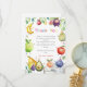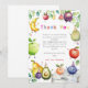 Säg ” tack så mycket” på det sötaste sättet med detta färgglada och fantasifulla Two-tti Frutti-tackkort! Designat för att matcha en tutti frutti- eller frukt-tema 2-årsfest, har detta kort söta frukter i akvarell - leende bananer, bär, päron, äpplen och mer - alla med festliga födelsemössor. Den lekfulla "Tack"-texten i regnbågens färger ger en glad och hjärtlig touch.