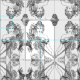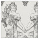 En spegelförsedd design av en alphonse muchakvinna med blommor i en flödande klänning. Hon inramas med pepparkakaklippning.