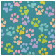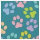 En utskrivaven tygdesign som presenterar tass avtryck för sötfärgadhund på en krickabakgrund.