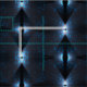 En abstrakt målning av blått på svart har ändrats in i ett geometriskt mönster och skrivs ut på bomullstyg. Den ger verkställa av ljus.