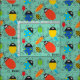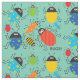 Tyg för så många kryp, gulligt, roligt, färgrikt, särdrag som en aquabakgrund med raddor buggar med googly ögon, randar, och svart text för fläckar och som läser KRYP!
