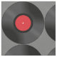 Grått bomullstyg med vinylrekorddesign