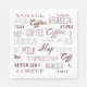 Ord i olika typsnitt för olika typer av kaffedrycker. Den här designen ser ut att vara effektiv på dessa Pappra servetter