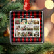 Enkel, rustisk fotokollage med ett ornament med minimalistiskt typsnitt och röd pläterad bakgrund. Lägg enkelt till foton och detaljer för en anpassningsbar julprydnad.