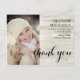 Foto av typografi "Tack" med en rustik visköld ved mönster på högerna. Anpassa framsidan med foto, namn, klassår och skoltext eller annan text, och baksidan med din returadress. Design efter Helgdag - Utformning (reserverade höger).