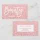 En elegant modern, skönhet i snyggten, en skönare konstnär som affärskort med elegant-manuset som bokstaverar stil-typografi i vitt på ett faux ro guld glitter och pastel rosa och trendig leopard bakgrund. Om du behöver anpassa dig, tveka inte att kontakta mig