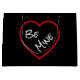 Enkelheten "be min" är designad för minimalisten, som vill få höger till saken. Enkel, men edgy, med svart bakgrund och ett stort öppet rött hjärta... avslutat i vit text, med handskriven kalligrafi av stil.