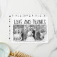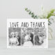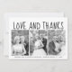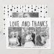 Fetstipografi Bröllop Tack tre fotosamlingskort med texten "Kärlek och tack". På baksidan finns ett svart och vitt mönster med punkter på linjer och ditt foto.