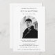 Fira livet och arvet efter din älskade med detta hjärtliga begravningskort. Med en tidlös bågformad fotodesign och klassisk typografi, hyllar denna inbjudan kära minnen medan den samlar familj och vänner. En enkel men elegant hyllning, den erbjuder ett meningsfullt sätt att minnas, reflektera och fira ett vackert liv för alltid i våra hjärtan.
