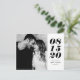 Modern Spara datum meddelande-vykort för svart datum, fet datum, | Ett anpassade sparar datumet på vykortet med fet och minimal typografi. Den här snyggten sparar vykortet som perfekt för alla bröllop-teman och alla årstider.