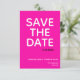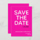 Ett bröllop spara datum-kort som är ljust, direkt och djärvt. Den här typografidesignen förmedlar budskapet i ett ljus-, vitt- och svart färg-rosa-schema. Bara ställe era uppgifter om kortet, lägg till det i din vagn och ha ett underbart bröllop. Enkel fetstilt Rosa för ljus - typografi Spara datumsemesterdesign | ©Melissa Patton - Designer